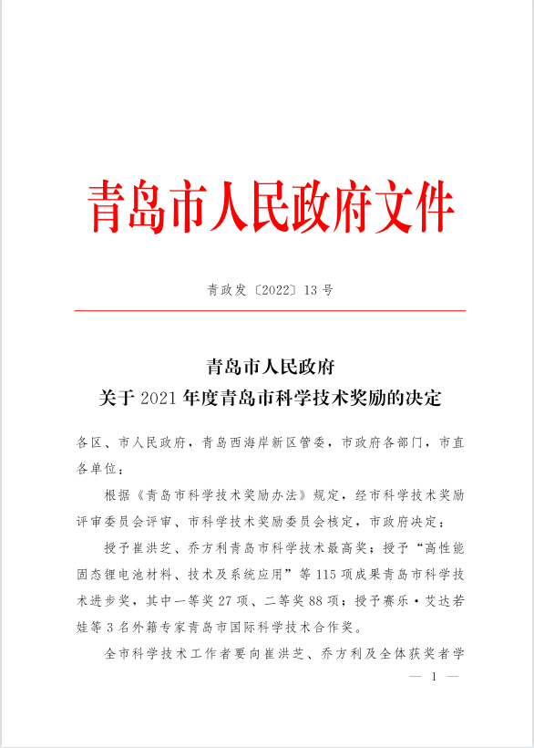 近日,青岛市人民政府发布了《关于青岛市科学技术奖励的决定》,公布了2021年度青岛市科学技术奖励名单。我校tyc7111cc太阳成集团刘红飞教授参与的《海洋环境下碱激发胶材低碳混凝土制备、服役性能与应用关键技术》项目喜获青岛市科学技术进步奖一等奖。