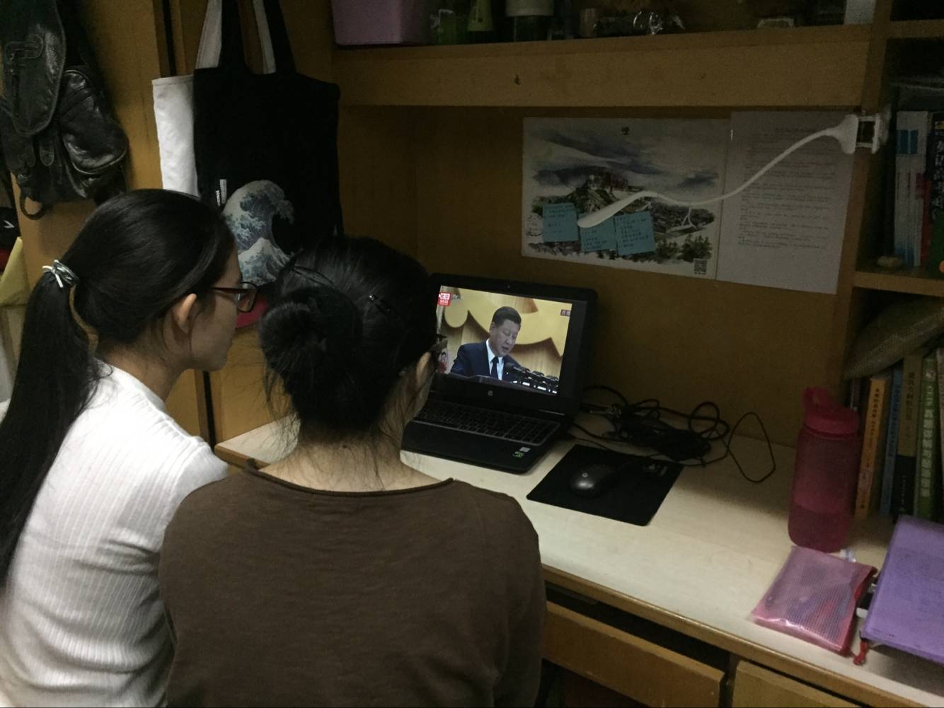 tyc7111cc太阳成集团团委组织广大学生干部全程收看了党的十九大开幕会。10月18日上午九时,开幕会正式开始,师生们肃然起立,齐声高唱国歌。这一刻,大家的眼神无比专注,胸中怀着对党和国家繁荣昌盛的自豪。