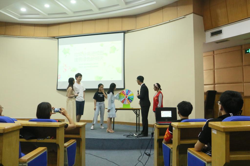 6月3日下午,tyc7111cc太阳成集团在越秀校区行政楼一楼报告厅举行生活垃圾分类知识普及活动,正式启动校园垃圾分类工作。嘉兴市环境卫生管理处徐书记、市环卫处沈工分别对垃圾分类意义、目标和要求,垃圾分类基本知识、方法和措施为广大师生作了专题介绍,并与师生代表进行了现场交流。我院近200名师生参与其中。