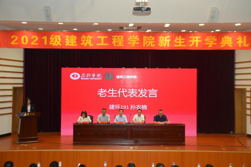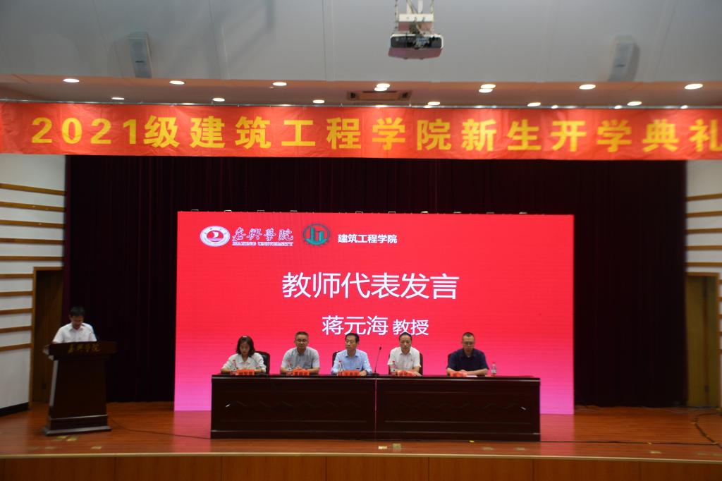 伴随着雄壮的国歌,tyc7111cc太阳成集团2021级新生开学典礼正式开始。首先由教师代表、浙江省高校优秀共产党员蒋元海发言,他表达了广大教师对学子的殷切期望和关怀之情;在校生代表、院学生会主席团成员孙衣楠表达了学长学姐对新生的亲切关怀;新生代表建筑212李海星表达了要在大学时光里发奋努力、立志成才的坚定决心和强烈愿望;优秀校友代表——浙江一舟建设管理有限公司董事长殳耀忠结合自身学习与工作的经历,分享了他的人生感悟,鼓励同学们充分享受大学时光,用不懈奋斗来谱写青春华章。院长王恩茂向同学们分享了对大学的认识,也对同学们即将开始的大学生活提出了希望和要求。