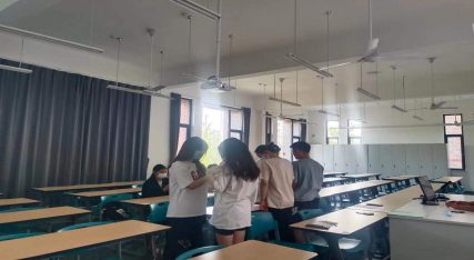 大会第三项:由工程管理专业2020级3班团支书孟凡玉同学向新团员宣读团员义务与权利,并由新团员入团介绍人孟凡玉、陈璇、魏荧向三位新团员佩戴团徽。