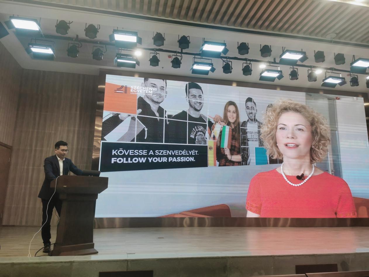 高万全副处长简要介绍了伊斯特凡大学所在城市、校园风貌和专业设置等情况,对学生关心的双学位项目实施方案、留学优惠政策和相关费用等作了重点说明。他鼓励学生要勇敢走出去,开拓国际视野,体验多元文化,全方位提升个人能力。
