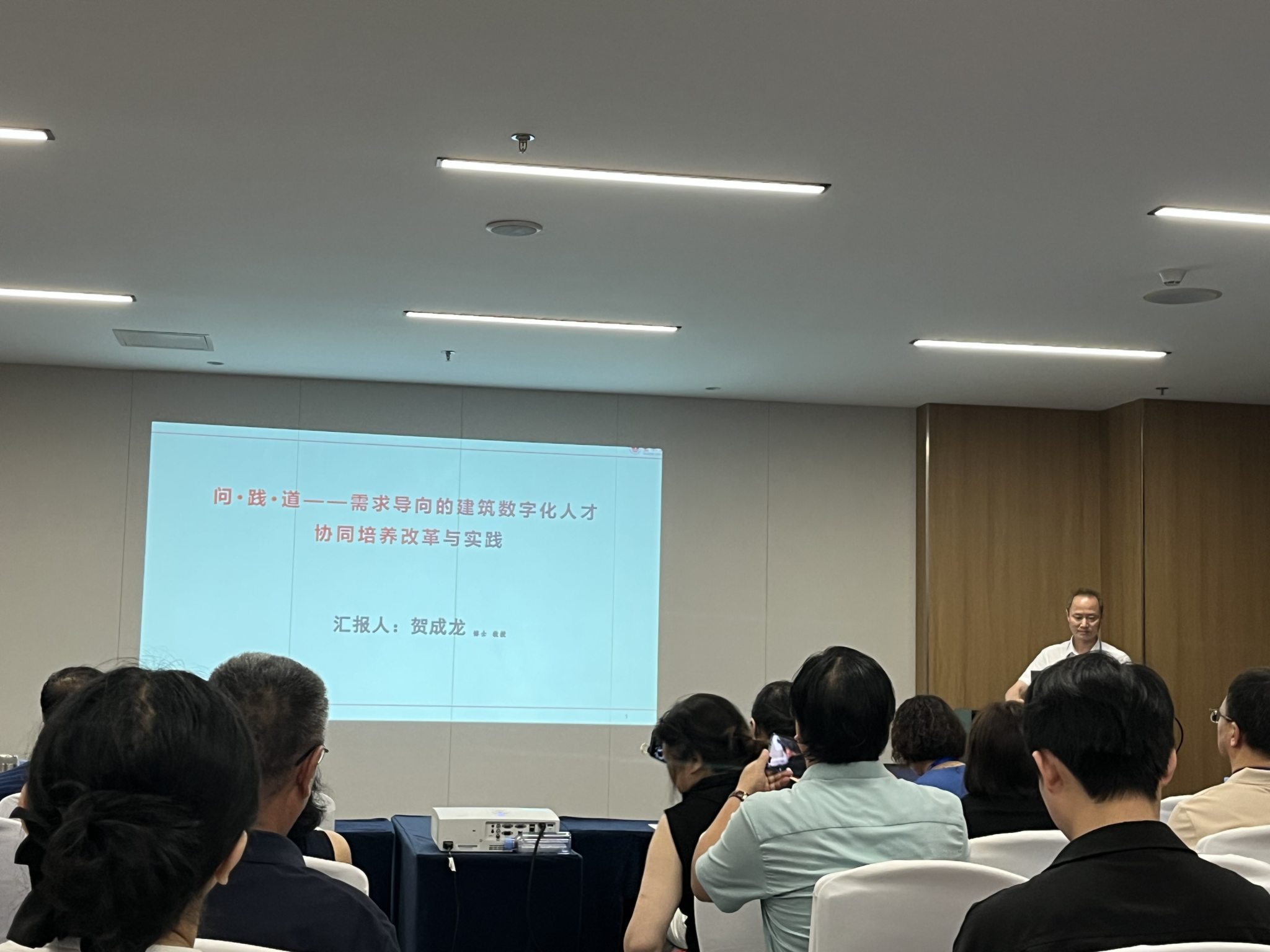 在7月6日的工程管理教育分论坛上,我院贺成龙教授作了“问·践·道——需求导向的建筑数字化人才协同培养与实践”报告,介绍了我院工程管理专业的数字化人才协同培养方面的经验和成果。
