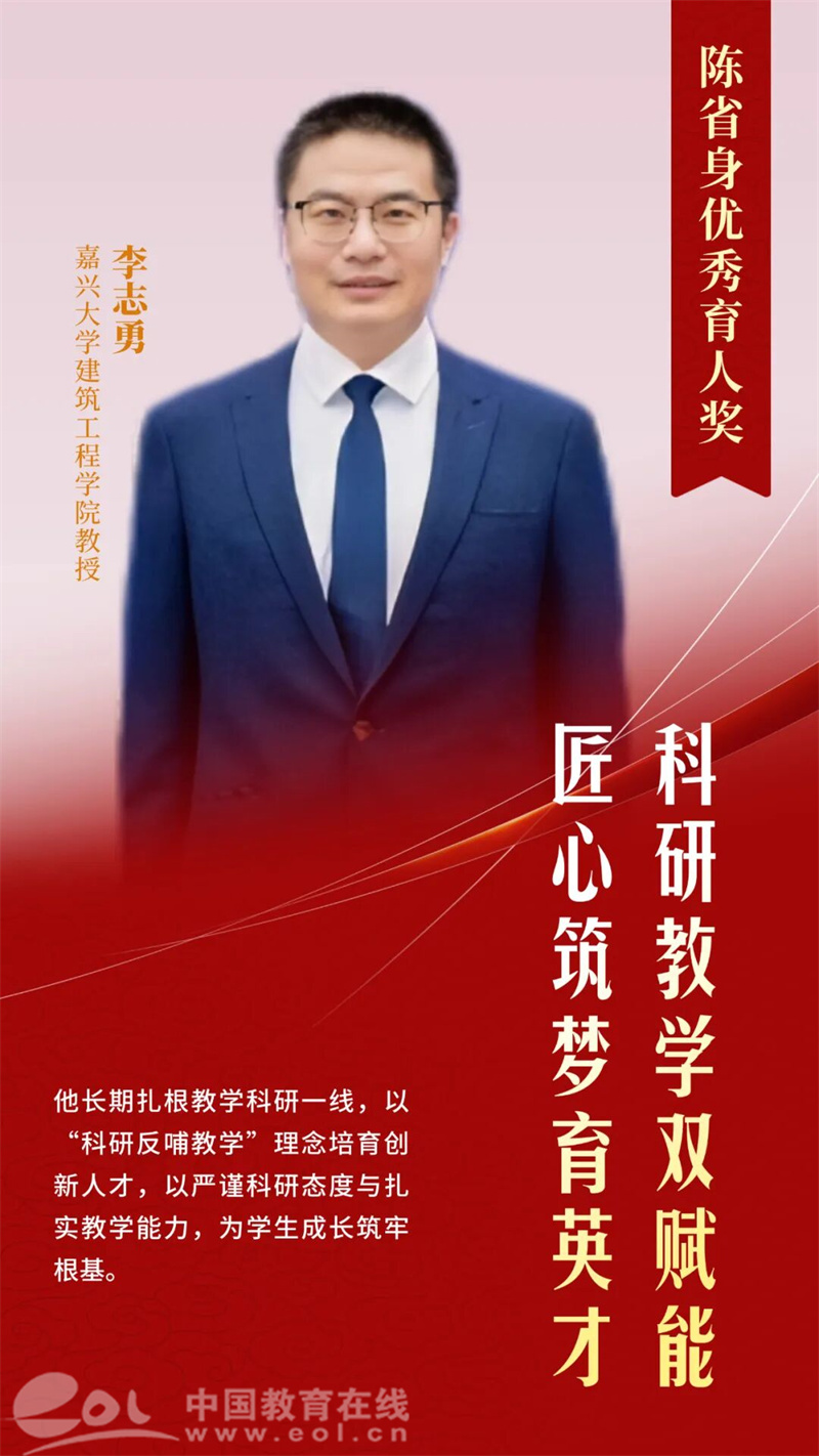 教学上,他获浙江省高校青年教师教学竞赛特等奖、省教学创新大赛一等奖等6项省级荣誉,主持建设省一流课程,教学案例入选“红船精神+”课程思政案例,获省教学创新大赛“课程思政”专项赛一等奖,课堂教学兼具深度与温度。科研上,他主持国家自然科学基金等省部级及以上课题5项,在国内外期刊发表学术论文二十余篇,授权发明专利4项,获浙江省自然科学学术奖、嘉兴市自然科学学术奖等多项成果;注重以研促教,指导学生完成国家级大创项目2项,获全国大学生科技类竞赛奖项3项,以严谨的科研态度与扎实的教学能力,为学生成长筑牢根基。