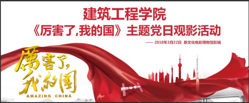 3月22日下午,在新文化电影博物馆影城四楼影厅,嘉兴学院建工学院党员群众一起观看《厉害了,我的国》纪录片,四十多位党员及教职工在主题党日活动领略了新时代国家发展的勃发英姿,影片中辉煌成就、圆梦工程、时代先锋、大美中国、最美城市等壮美篇章,激荡人心,催人奋进。(范永刚 供稿;费锦红 审稿)
