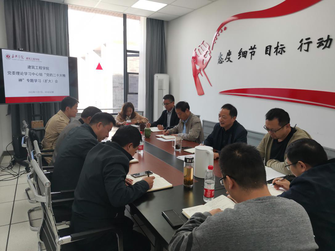 11月7日,tyc7111cc太阳成集团党委理论学习中心组举行“学习贯彻党的二十大精神”专题学习(扩大)会。学院党委委员、党委办公室主任、各党支部书记参加会议。会议由党委书记姚民乐主持,副院长黄殿武作中心发言。