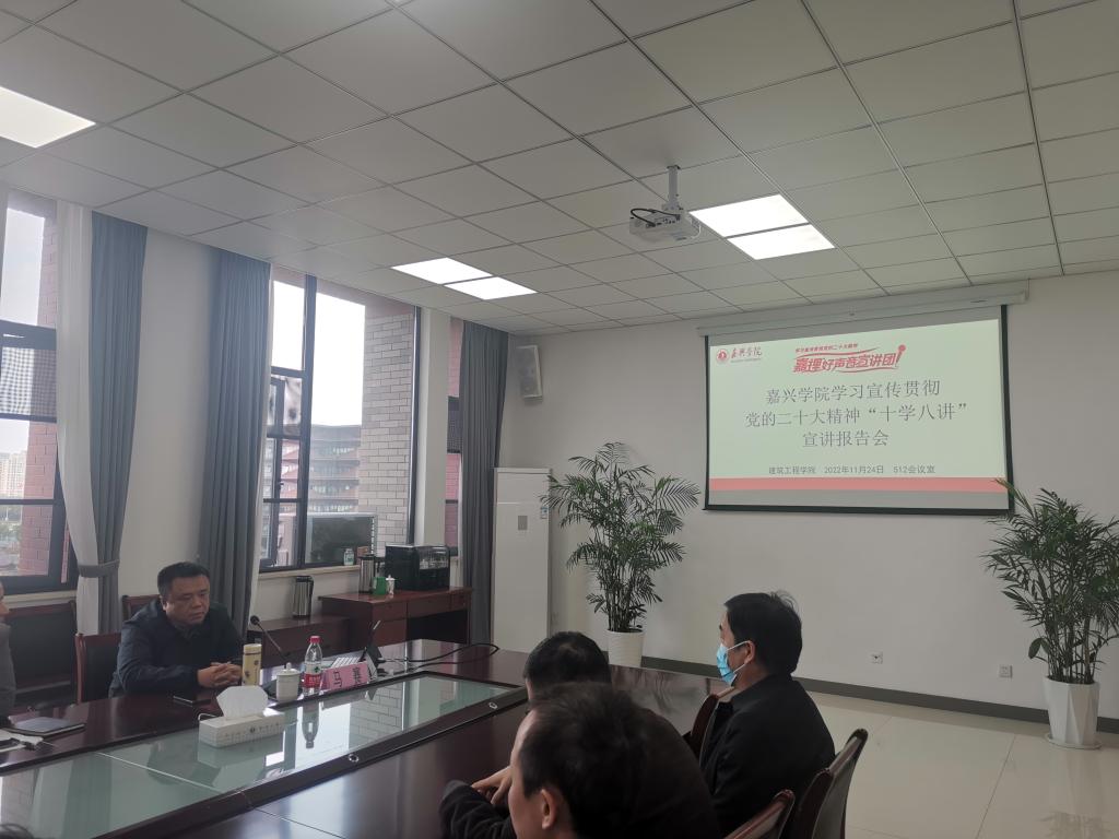2022年11月24日下午,tyc7111cc太阳成集团召开全体教职工大会,开展学习宣传贯彻党的二十大精神“十学八讲”宣讲报告会。马克思主义学院马赛教授受邀来院作专题宣讲。会议由党委书记姚民乐主持,学院党政领导班子、全体教职工参加会议。