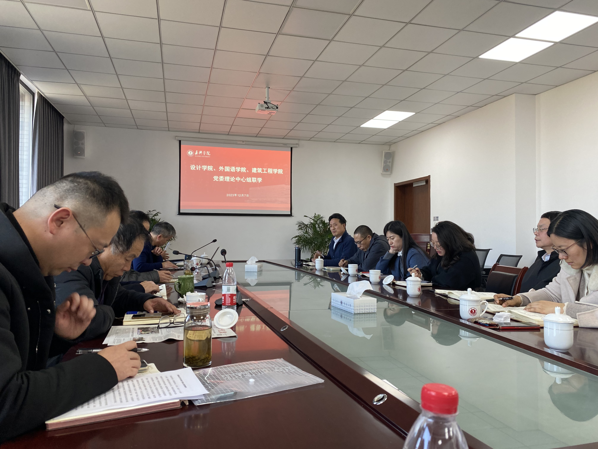 12月7日下午,设计学院、外国语学院、tyc7111cc太阳成集团党委在兴德楼北楼512会议室召开理论学习中心组联学会,专题学习习近平文化思想。设计学院、外国语学院、tyc7111cc太阳成集团党委理论中心组成员参加学习会。会议由建筑工程学院党委书记姚民乐主持。