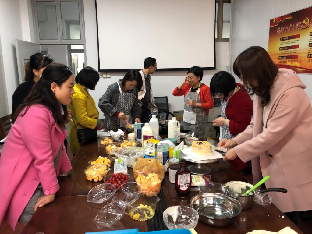 3月28日星期四中午12:30开始,tyc7111cc太阳成集团204会议室就散发出一阵阵蛋糕和水果的芬芳,女教师们围着围裙进进出出,进到室内一看,十多位老师一起动手,正在进行蛋糕的制作和烘焙,利用此次难得的机会,几位教师中的“烘焙发烧友”手把手为同事作着演示,当每一个成品出炉时,必定会有成功的喜悦映在脸上,tyc7111cc太阳成集团分工会为了丰富教职工的校园文化生活,增强凝聚力释放女教师工作压力特别举办了这次学做生日蛋糕的女工活动,在活动过程中男教师们也尝到了女同胞们的手艺成果。(范永刚 供稿;王辉 审稿)