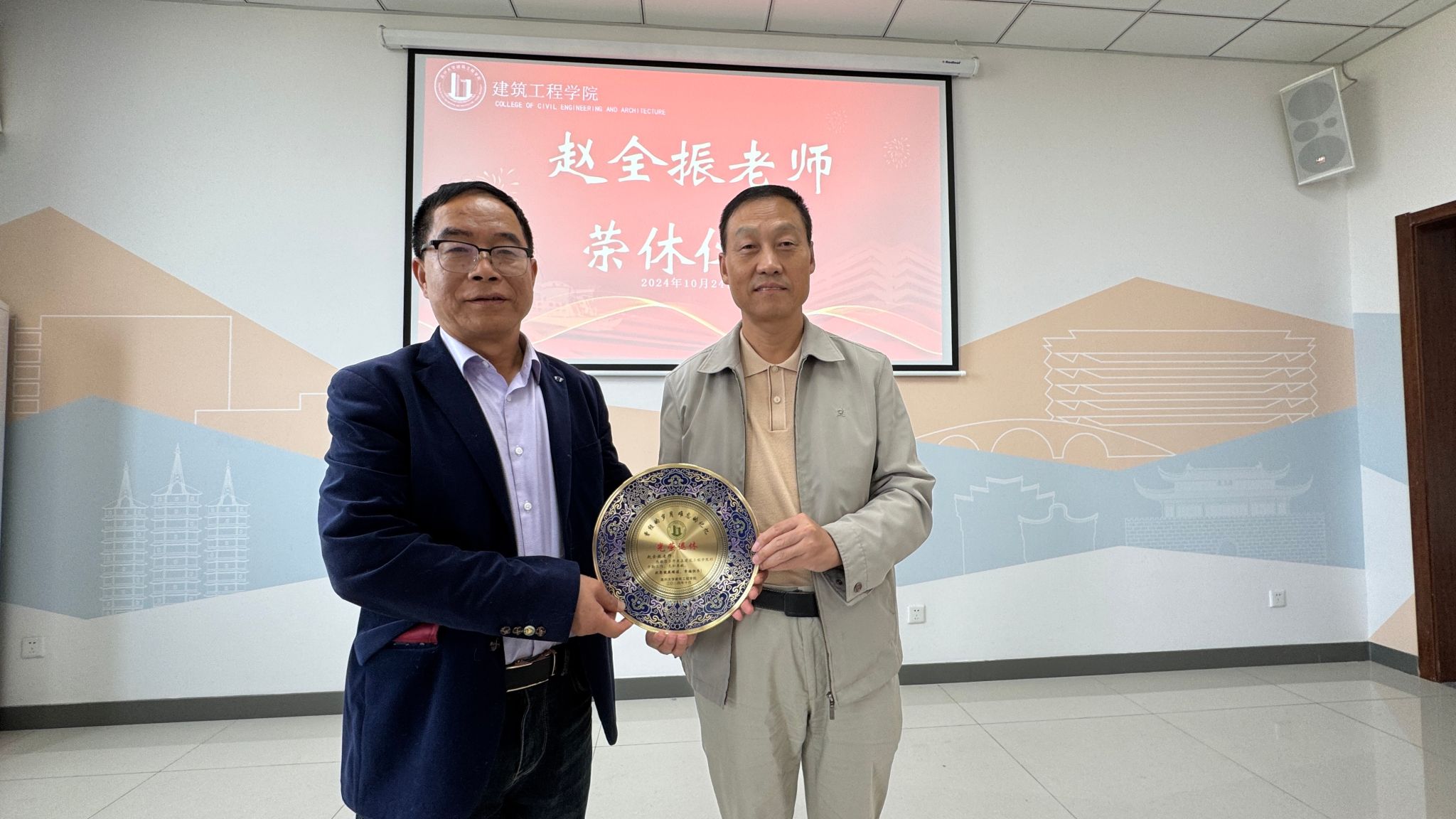 赵老师回顾了自己几十年教育教学中的坚守、奉献与荣耀,并分享多年教书育人的感悟。希望青年教师热爱高校教师这个职业并为之奋斗,表达了对学校、同事的深厚感情。他表示,虽然退休了,但将继续为学院的发展贡献自己的力量,希望老师们都能以建工学院为家,认真做好本职工作,为学院高质量发展贡献一份力量。