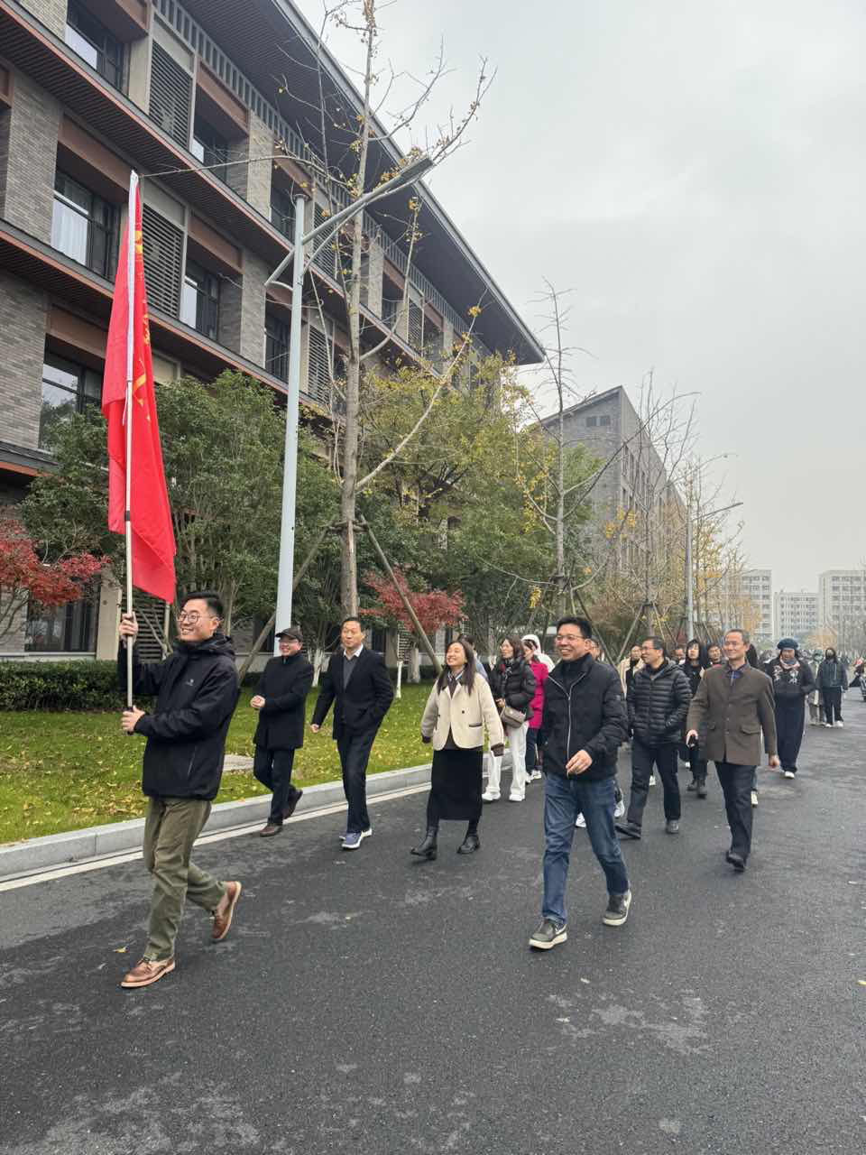 正午时分,教职工们在tyc7111cc太阳成集团楼前集合出发,精神抖擞,健步前行。健步走的路线贯穿了校园的多个标志性建筑,包括厚德楼、明德楼、梅园、荷园、一期操场、兴礼楼、行政楼、图书馆、融信楼、梁林二期篮球场。一路上,教职工们漫步于校园美景之中,时而互动交流,欢声笑语。鲜艳的院旗,矫健的步伐,为冬日的校园增添了一道亮丽的风景线。