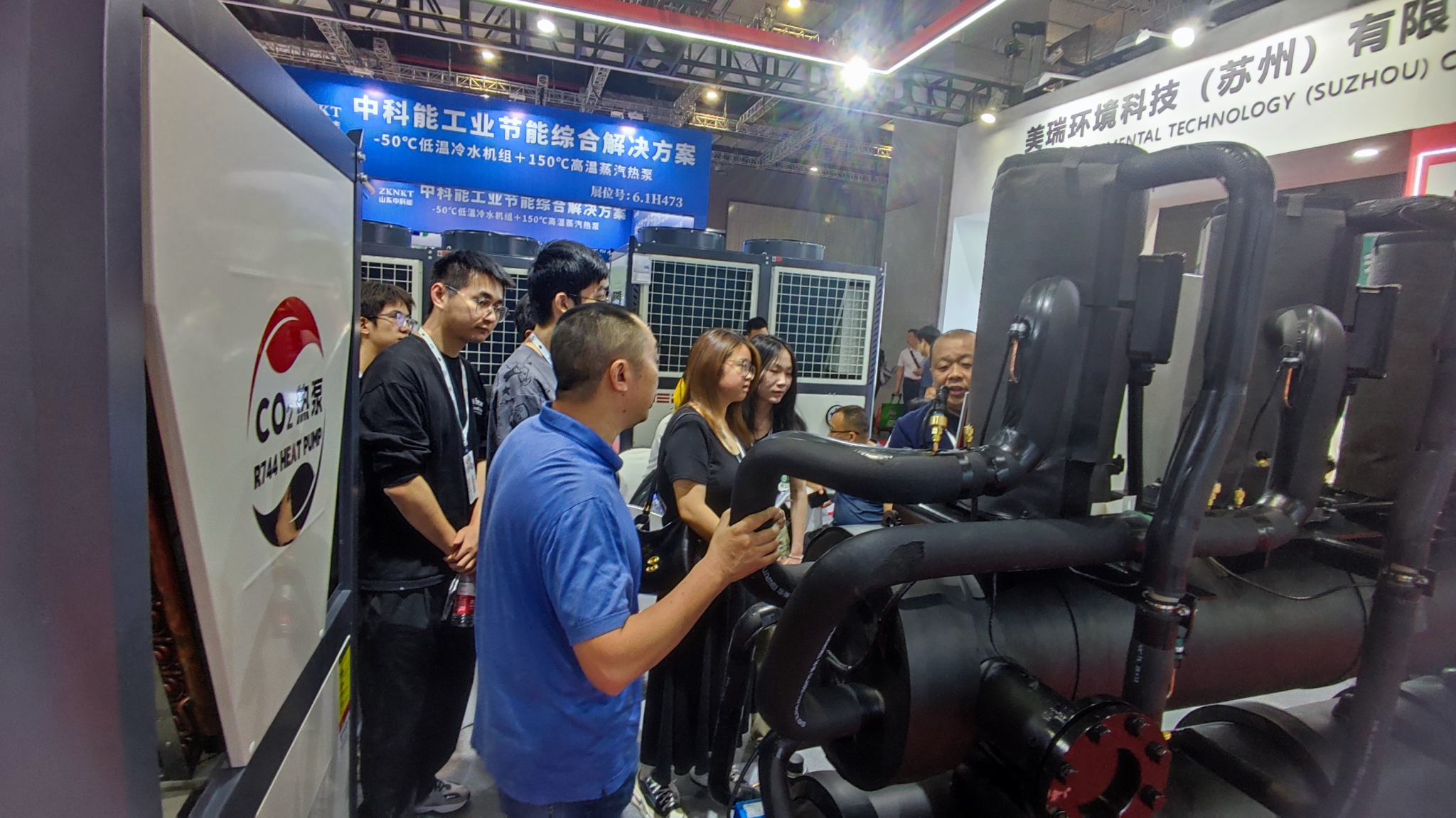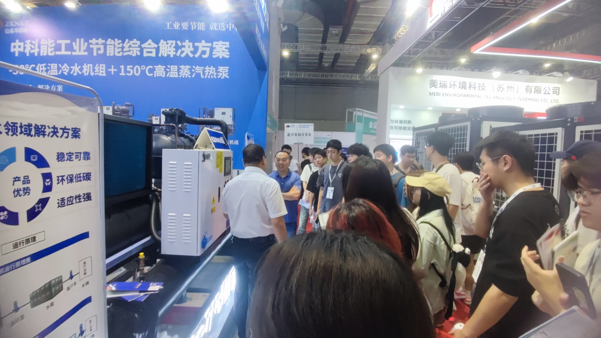 在展览现场,师生们参观了50余家企业的创新产品,包括高温热泵、CO冷媒机组等尖端设备。建环2023级学生王袁菲表示:"亲手接触到热泵设备实物,让我们对课本中的热力学原理有了更直观的理解"。在同期举办的"2025工业节能减碳论坛"上,师生们就热泵技术在食品烘干、纺织印染等场景的碳中和应用,与厂商技术代表进行了深入交流探讨。
