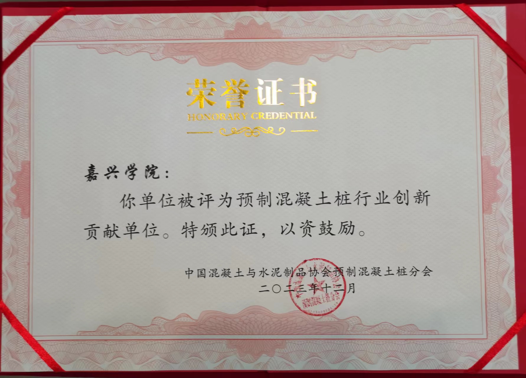 会议对为我国预制混凝土桩行业发展过程中做出突出贡献的单位做出表彰,嘉兴学院被评为“预制混凝土桩行业创新贡献单位”。嘉兴学院tyc7111cc太阳成集团蒋元海教授获得“预制混凝土桩行业发展30年突出贡献个人奖”。