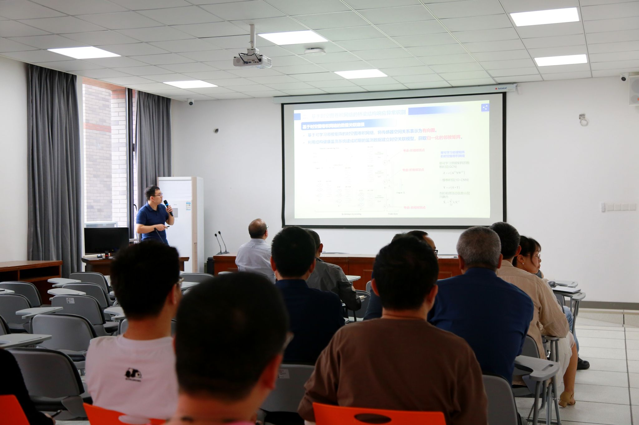 2025年4月17日,土木与交通工程研究所牛津博士在兴德北楼402室作了一场题为《基于时空关联表征的桥梁结构响应异常诊断与故障测点辨识》的学术报告,土木工程系教师参加了此次活动。