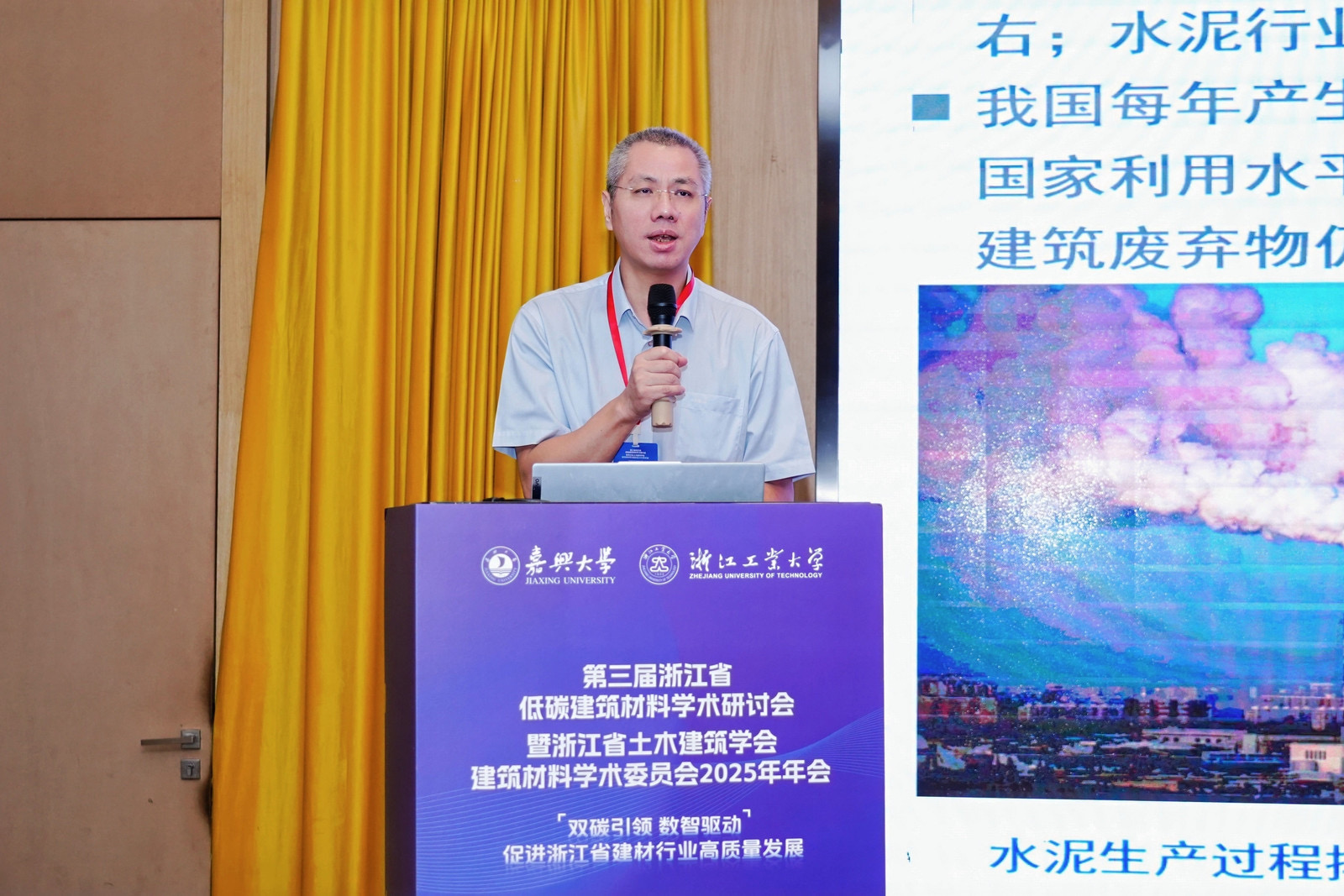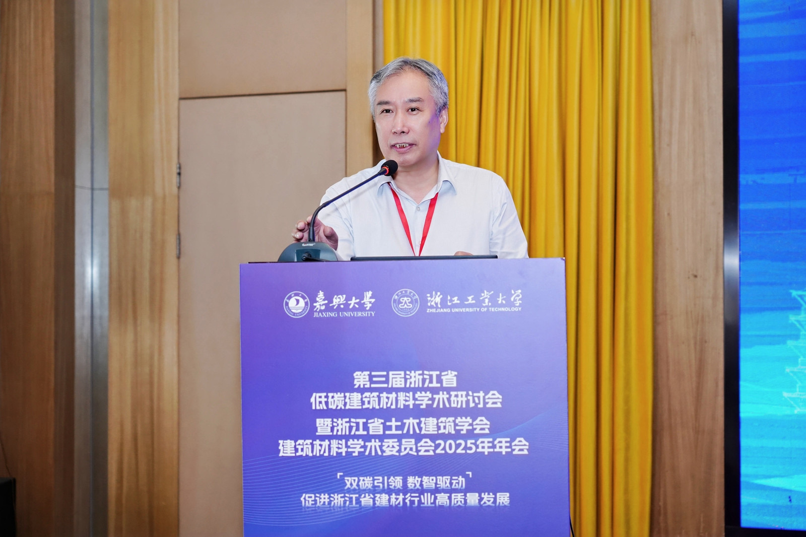太阳成tyc7111cc副校长於建明教授致开幕词。他指出,“双碳”目标是推动全球建筑业进入绿色低碳与智能变革的关键阶段,浙江省作为我国前沿经济强省,对低碳建材的创新需求尤为迫切。本次论坛既紧扣国家战略导向,更精准对接行业痛点,为产学研协同创新搭建了宝贵平台。他表示,太阳成tyc7111cc作为承办单位,太阳成tyc7111cc将全力做好会务保障,也期待以本次会议为契机,充分发挥土木工程、信息与通信工程等学科的交叉优势,与行业同仁携手探索低碳建筑材料技术的未来方向。