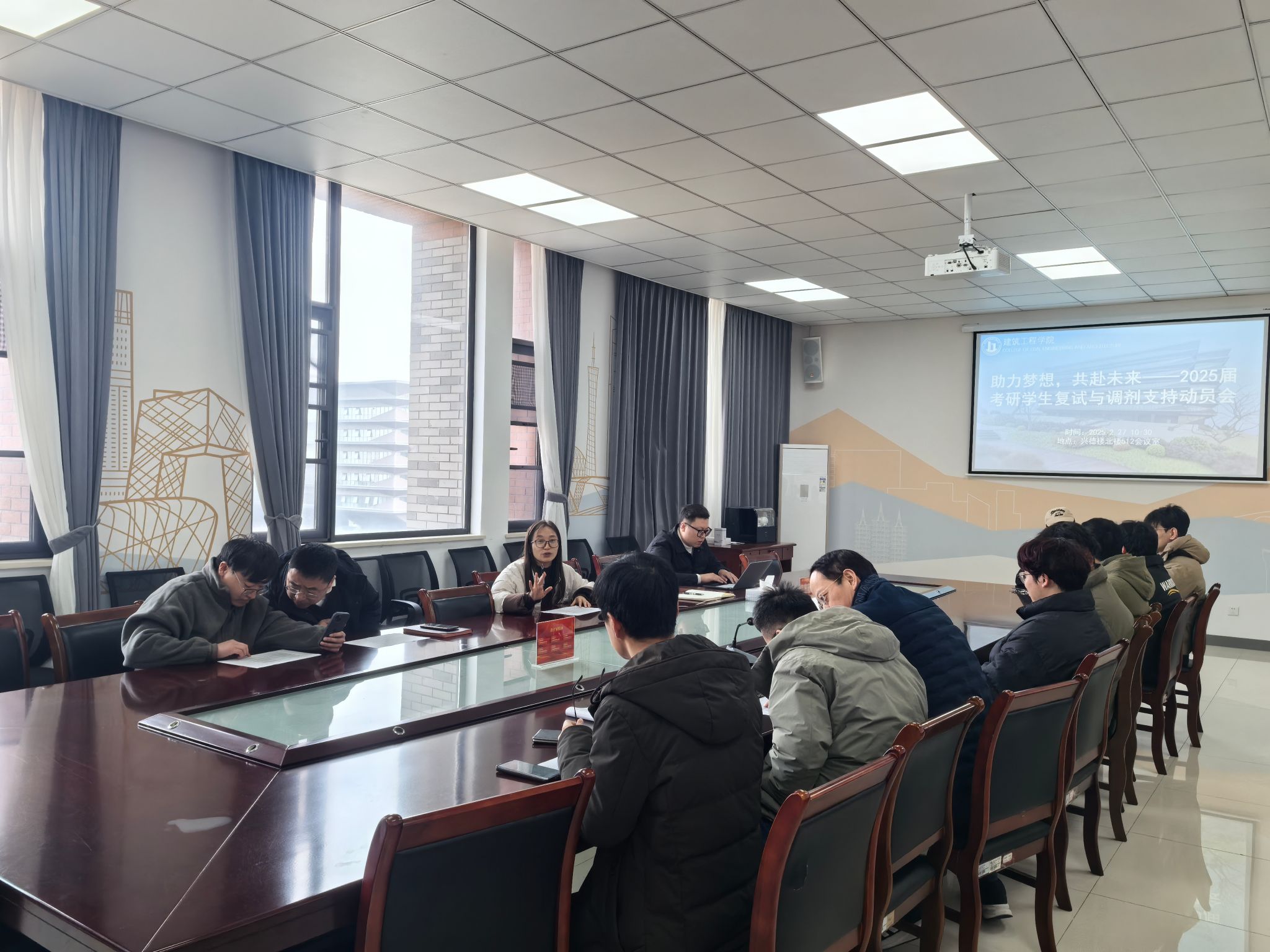2025年2月27日,tyc7111cc太阳成集团在兴德楼北楼512会议室举办“助力梦想,共赴未来——2025届考研学生座谈会”。学院党委副书记杨智慧、副院长熊厚仁、就业辅导员庄峰、毕业班班主任及考研学生线上线下同步参会。