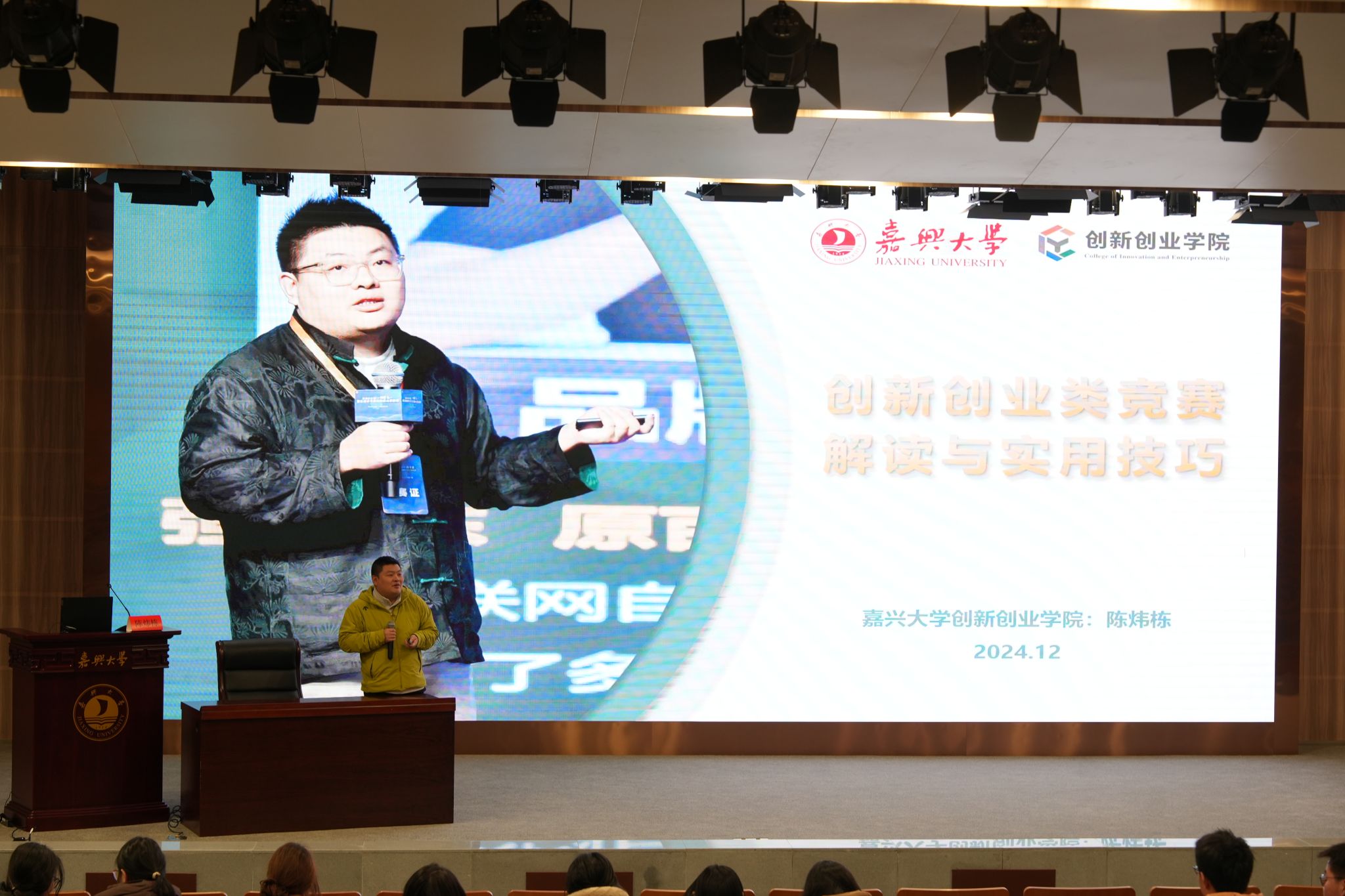 会议还邀请了创新创业学院陈炜栋老师为同学们讲解创新创业比赛相关知识。他从项目选题、团队组建、商业模式设计、路演技巧等方面进行了详细讲解。并通过生动的案例鼓励学生积极参与创新创业比赛,提升创新能力和团队协作精神。